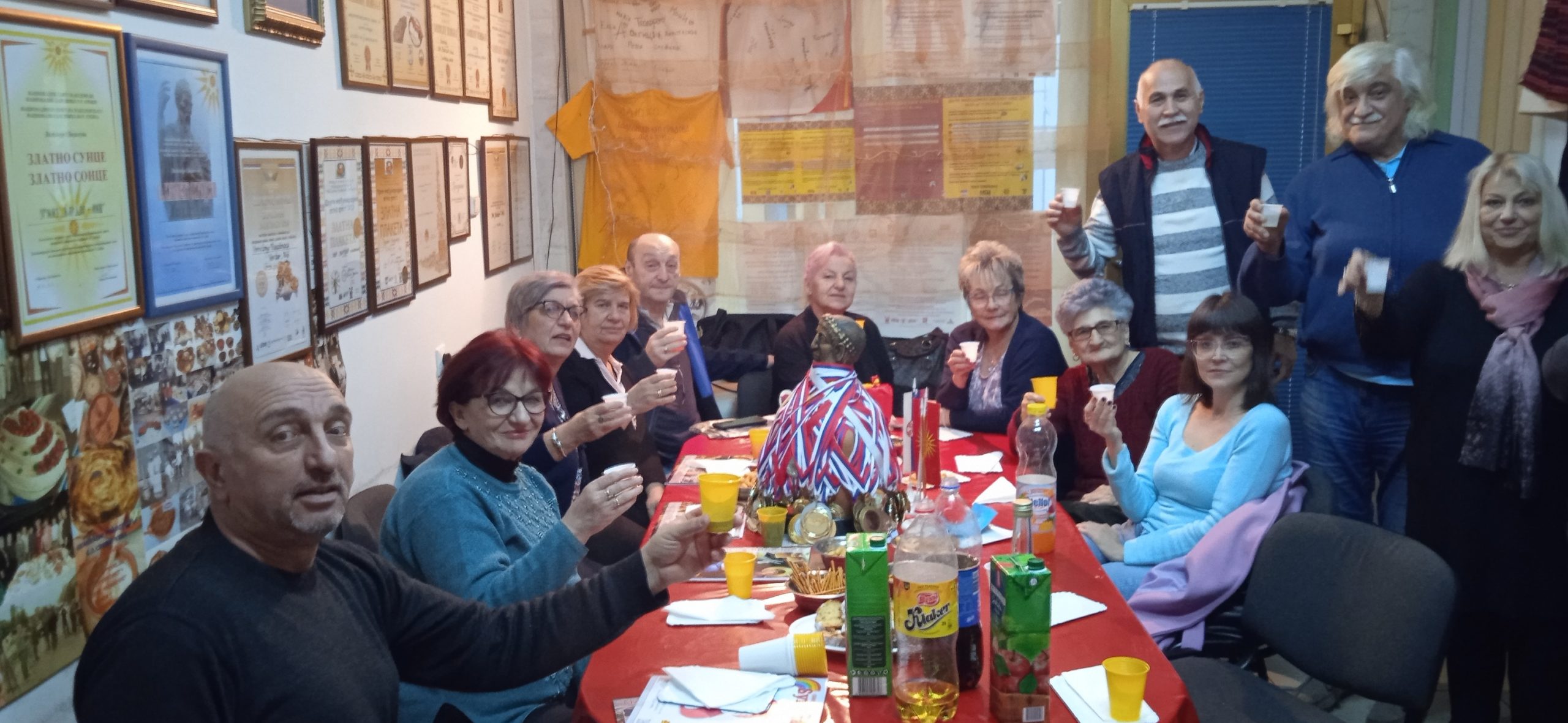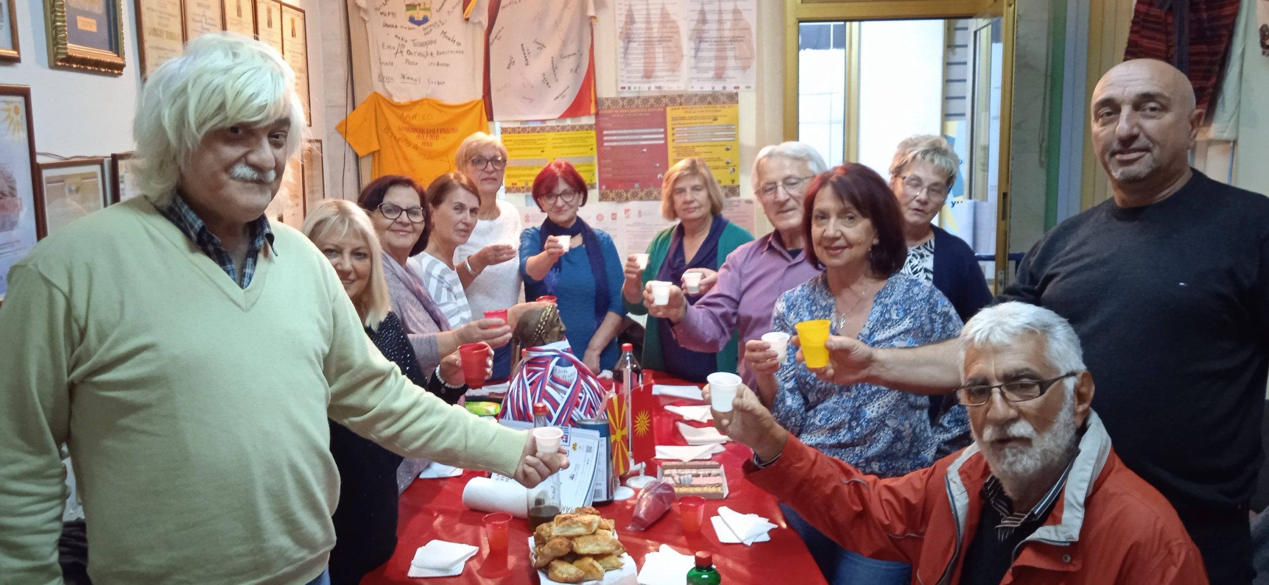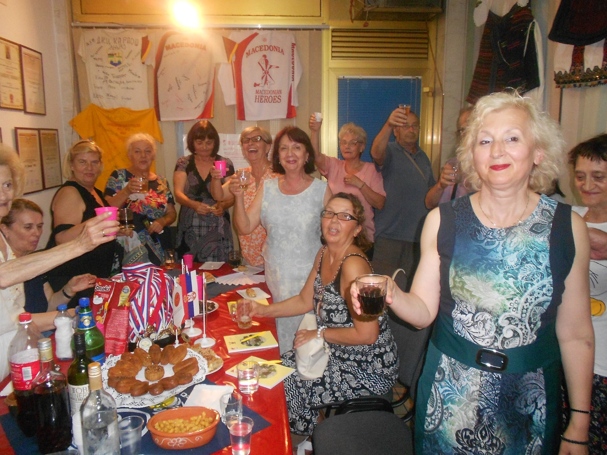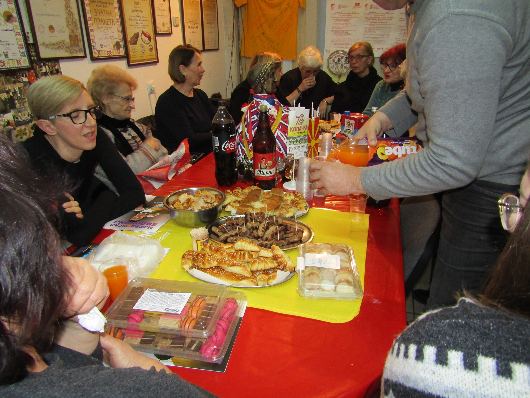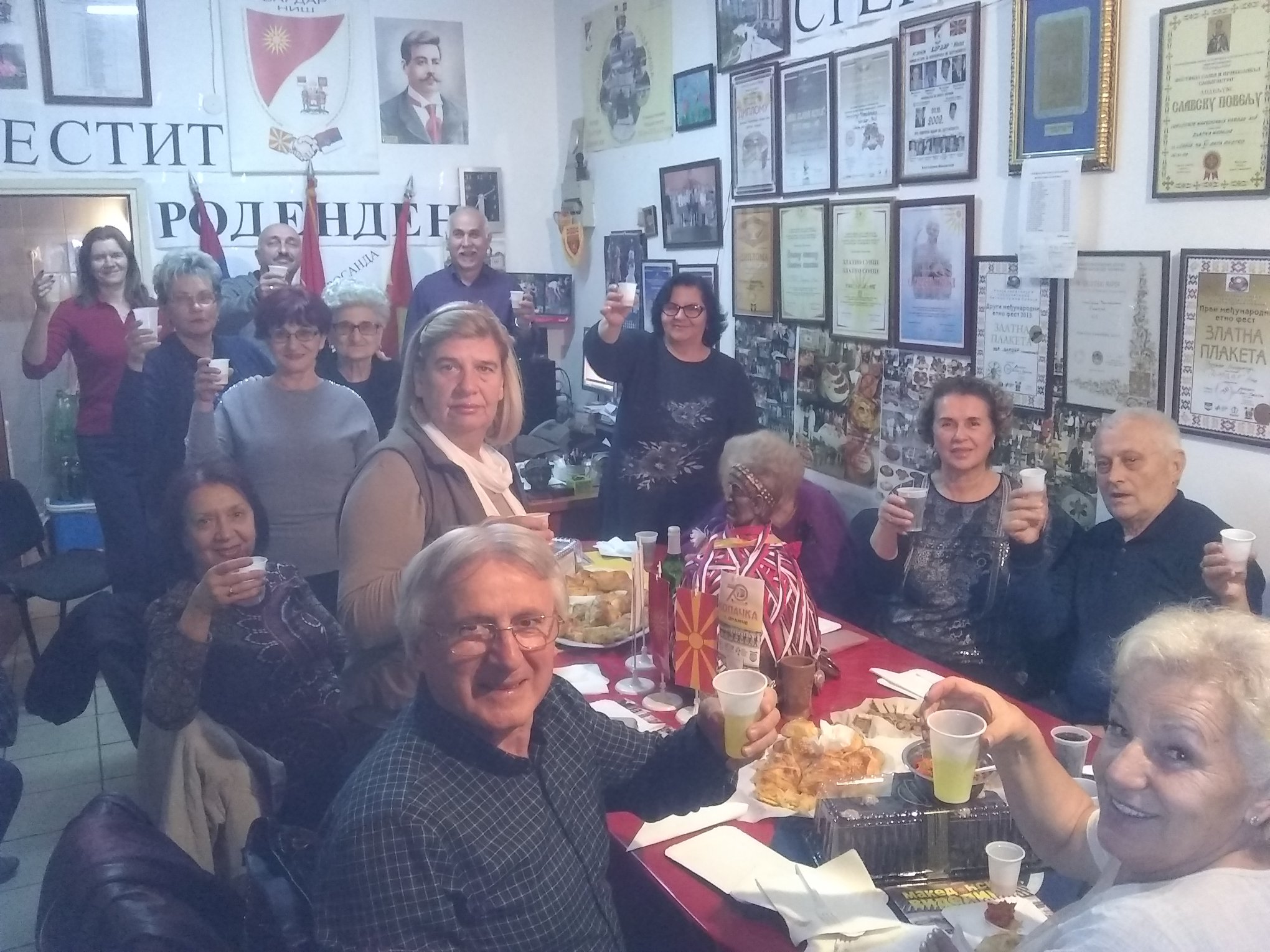 U prostorijama Udruženja, uz zvuke makedonske muzike, vladala je vesela atmosfera dok su se članovi okupljali da proslave još jednu godinu života svojih prijatelja – članova. Prostorija koju Udruženje koristi za okupljanje i za svoj rad ukrašena je bojama i simbolima Makedonije i Srbije, osvojenim nagradama i priznanjima i mirisima tradicionalnih jela, koje su pripremili članovi – slavljenici (brojne slatke i slane đakonije, razne kiflice , pite, torte i slatkiši, testenine, roštilj i zajednička rođendanska torta) koji mame osmeh na lica svih prisutnih.