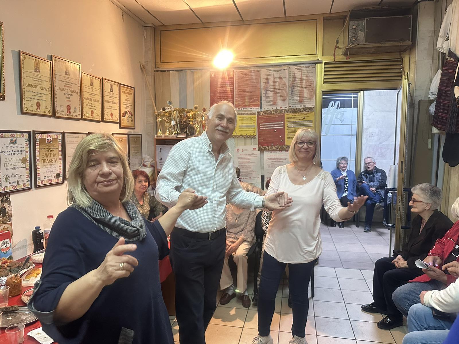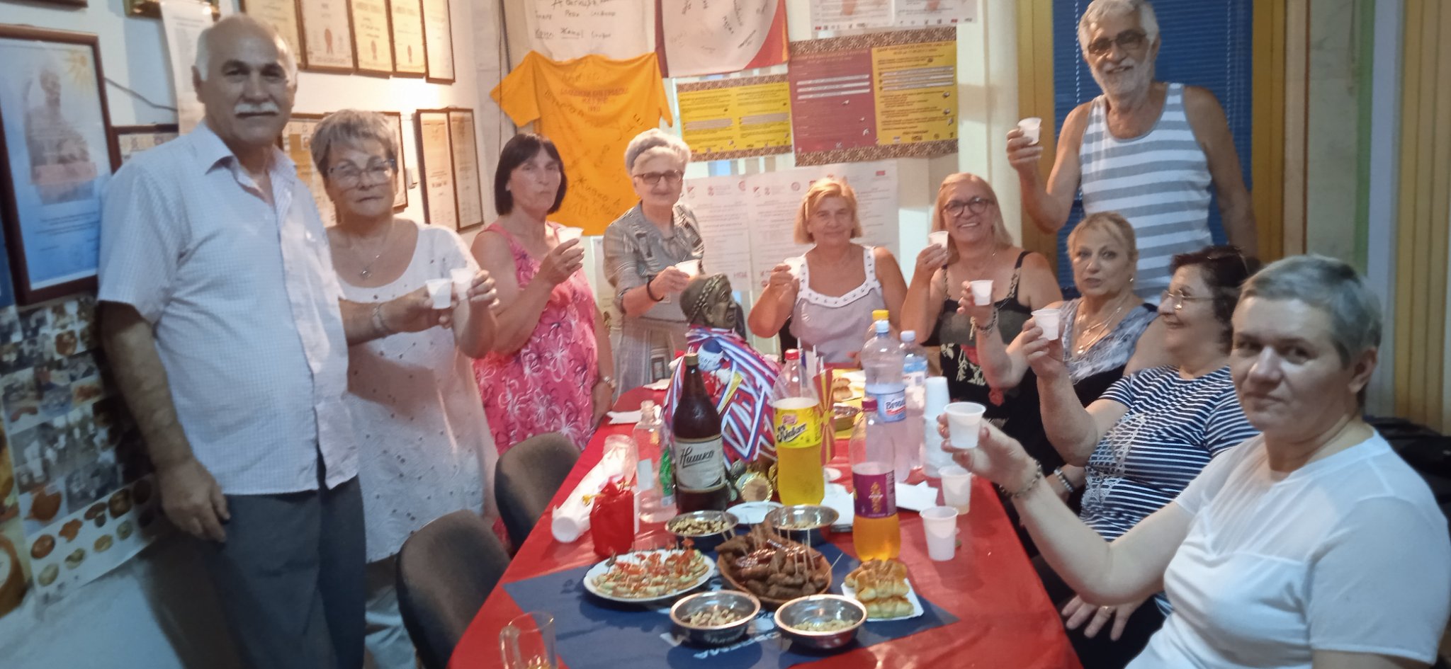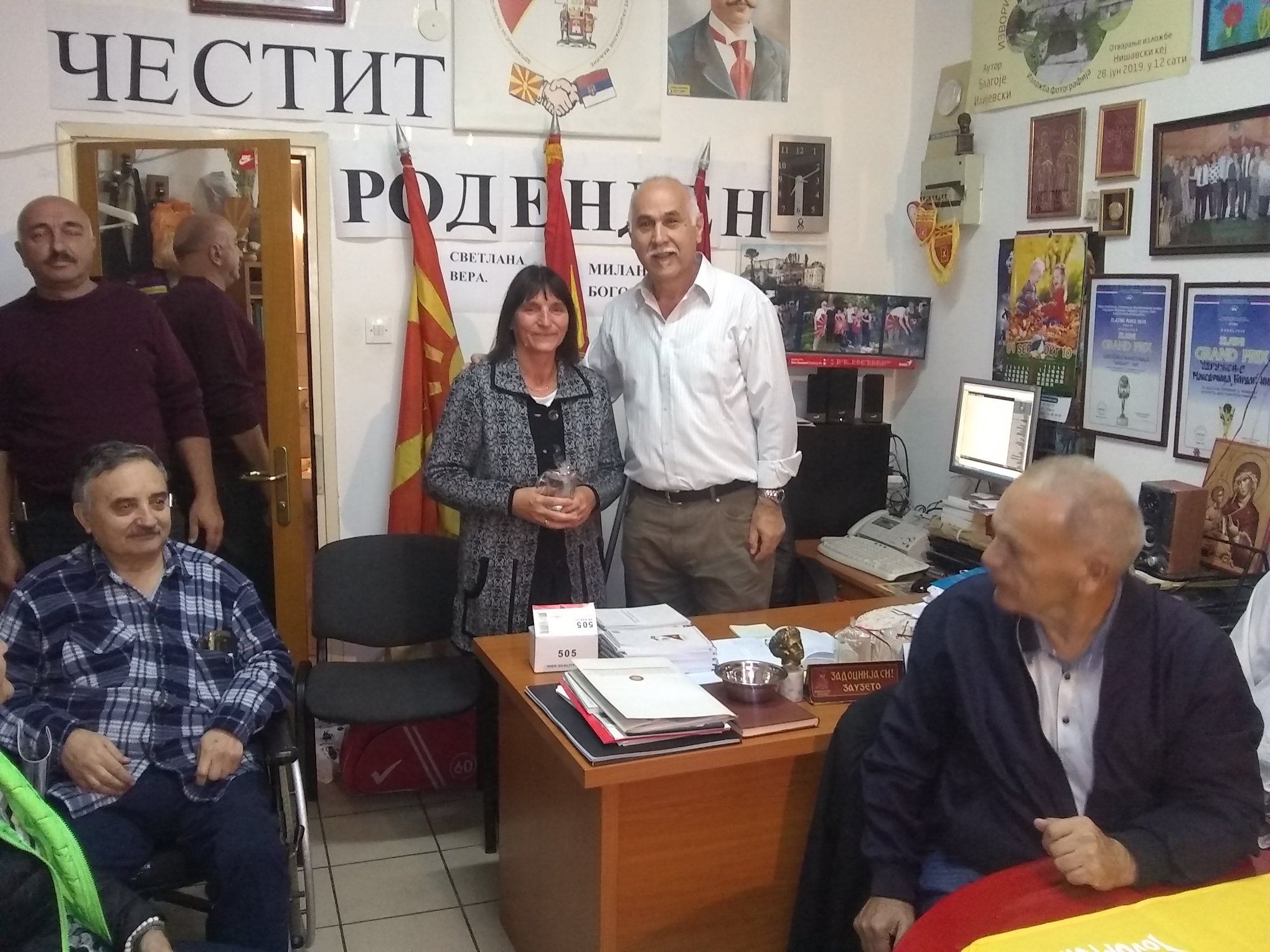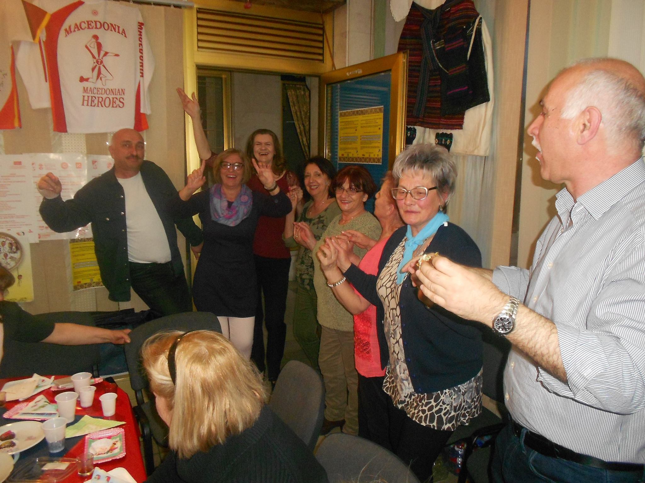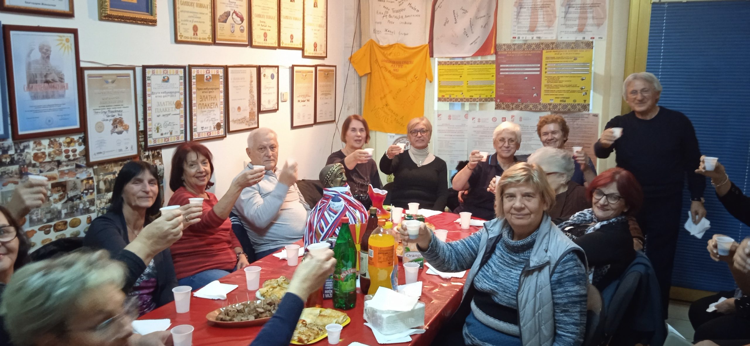 U prostorijama Udruženja, uz zvuke makedonske muzike, vladala je vesela atmosfera dok su se članovi okupljali da proslave još jednu godinu života svojih prijatelja – članova. Prostorija koju Udruženje koristi za okupljanje i za svoj rad ukrašena je bojama i simbolima Makedonije i Srbije, osvojenim nagradama i priznanjima i mirisima tradicionalnih jela, koje su pripremili članovi – slavljenici (brojne slatke i slane đakonije, razne kiflice , pite, torte i slatkiši, testenine, roštilj i zajednička rođendanska torta) koji mame osmeh na lica svih prisutnih.