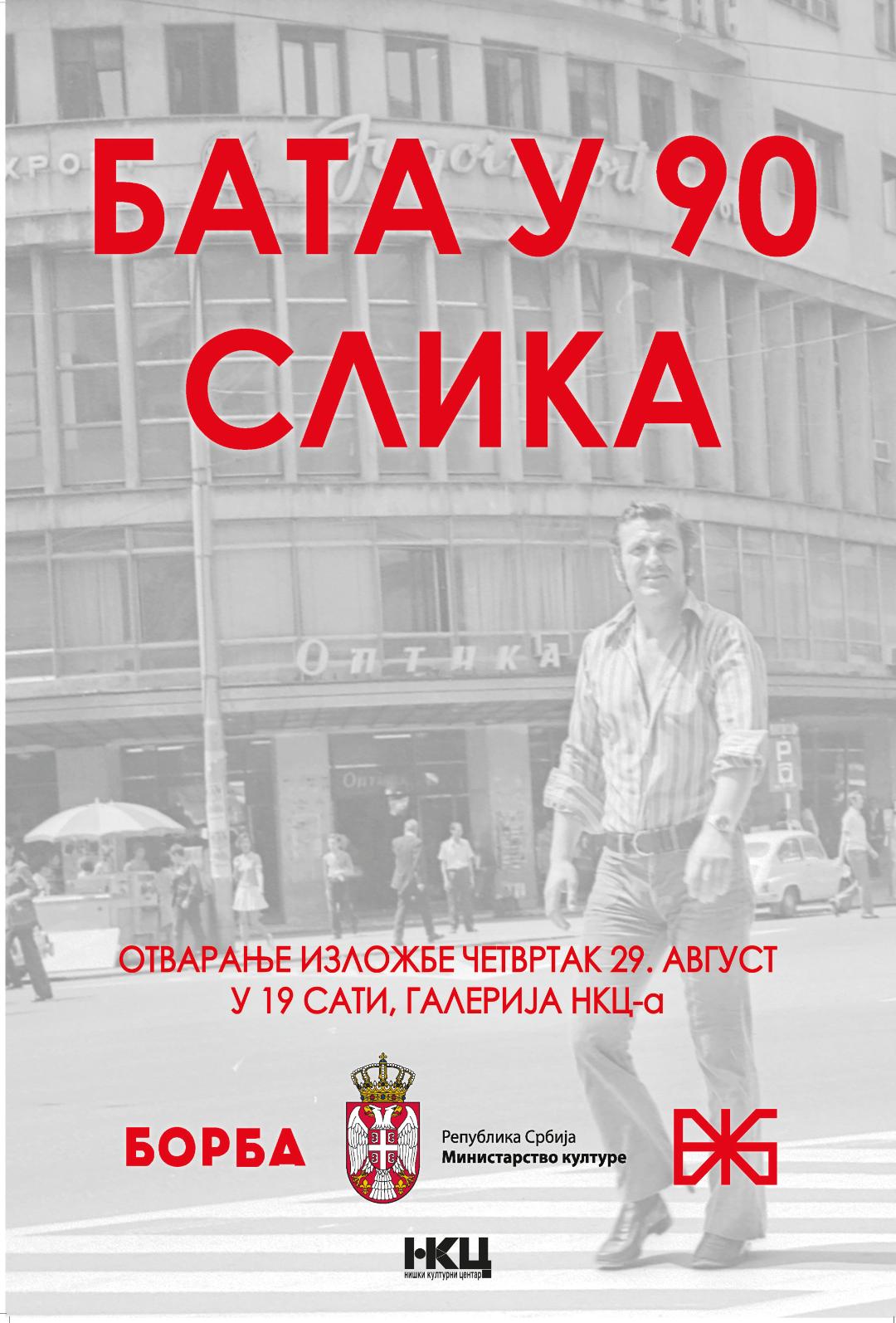 Izložba “Bata u 90 slika” povodom 90 godina od rođenja legend jugoslovenske i srpske kinematografije, Velimira Bate Živojinovića biće otvorena večeras u 19 sati u Galeriji NKC preko puta starog Kliničkog centra.