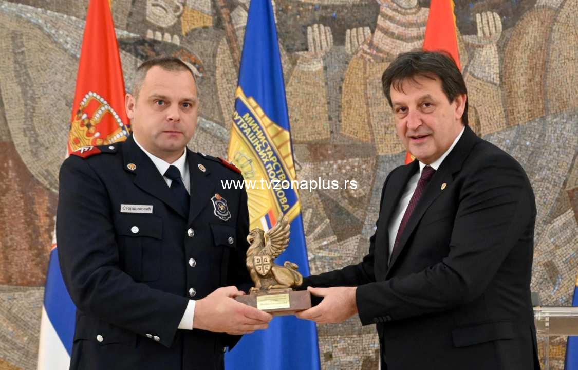 Nagrada za najhrabrijeg policijskog službenika dodeljena je vodniku prve klase Miodragu Stojadinoviću, vođi vatrogasno-spasilačke grupe, Vatrogasno spasilačkog odeljenja Velika Plana, zbog iskazane izuzetne hrabrosti pri spasavanju starije žene iz 20 metara dubokog bunara.