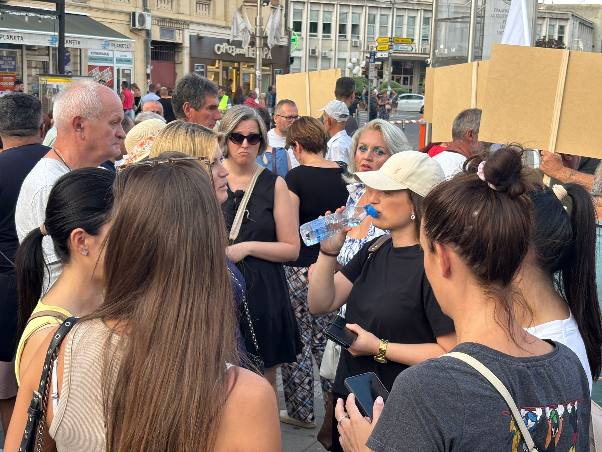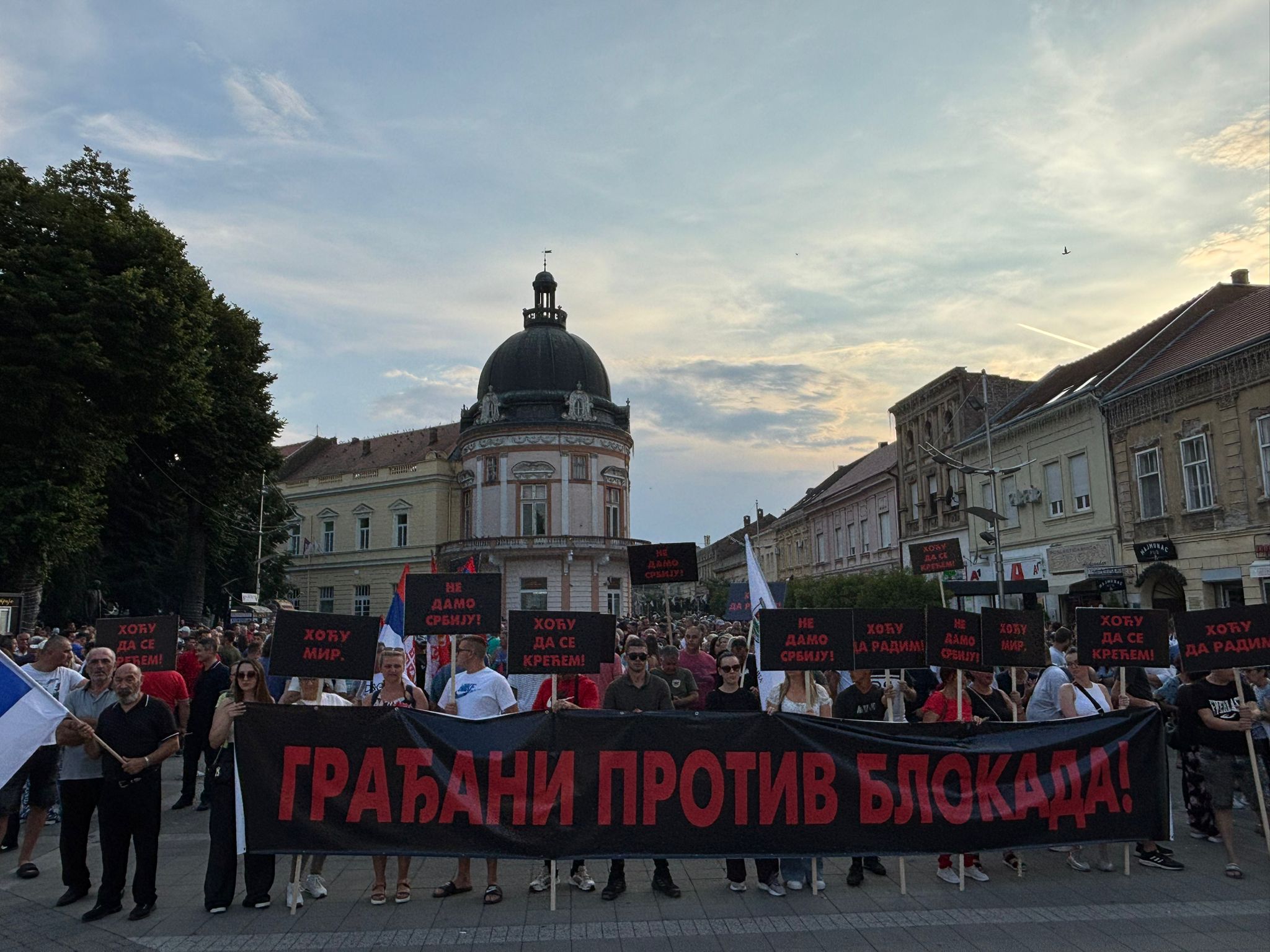 U Pančevu se skup održava ispred Skupštine opštine, a građani naglašavju da je njihova glavna poruka stop blokadama i da hoće da se vrati normalan život.