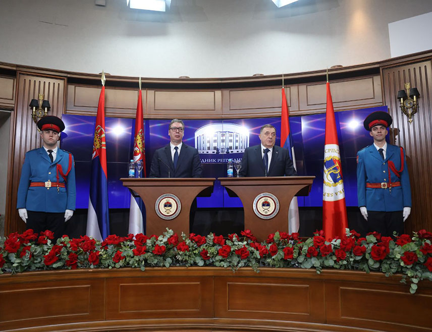 Predsednik Srbije Aleksandar Vučić razgovarao je danas tokom posete Banjaluci sa predsednikom Republike Srpske Miloradom Dodikom o ključnim pitanjima važnim za budućnost srpskog naroda.