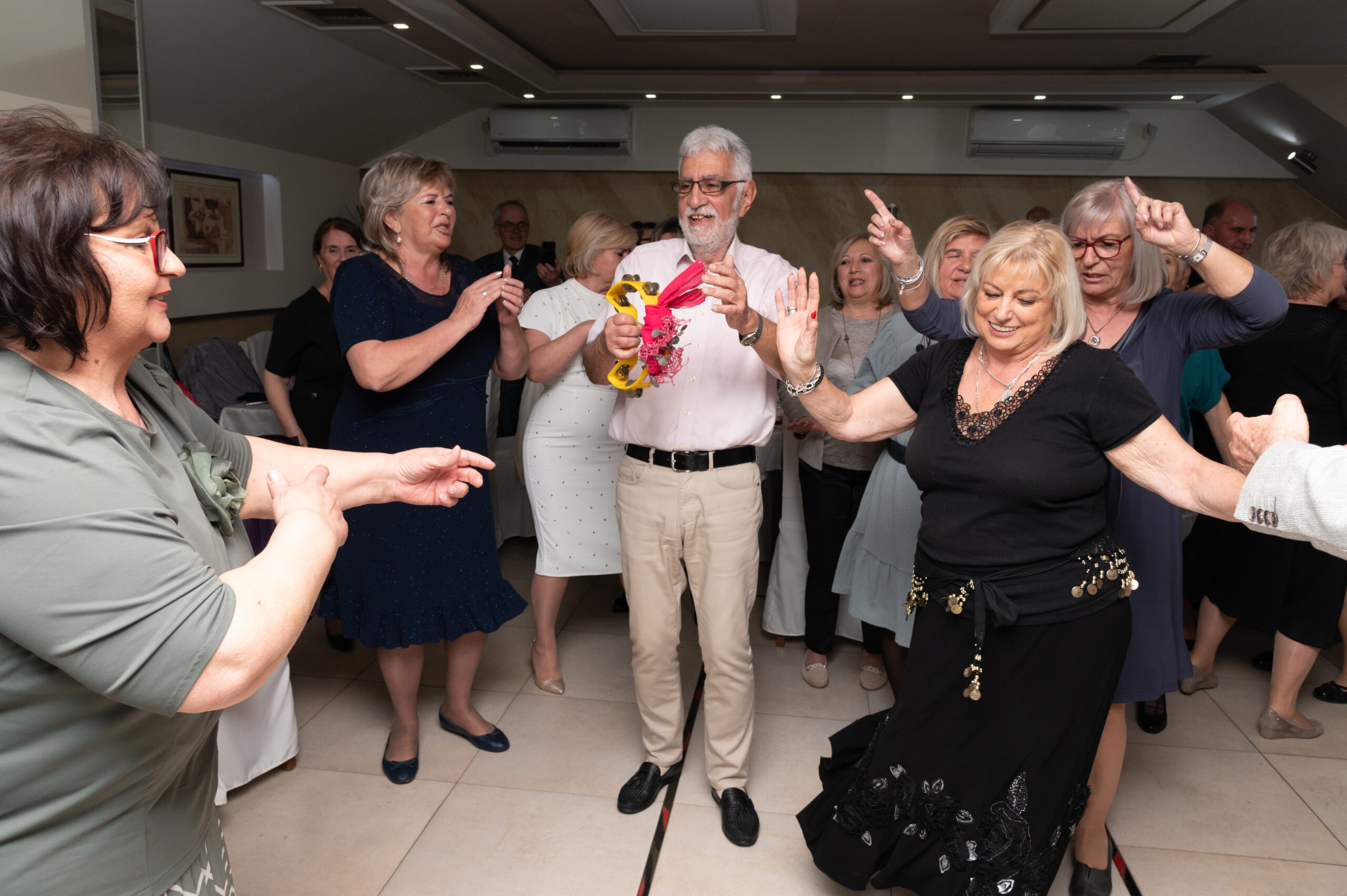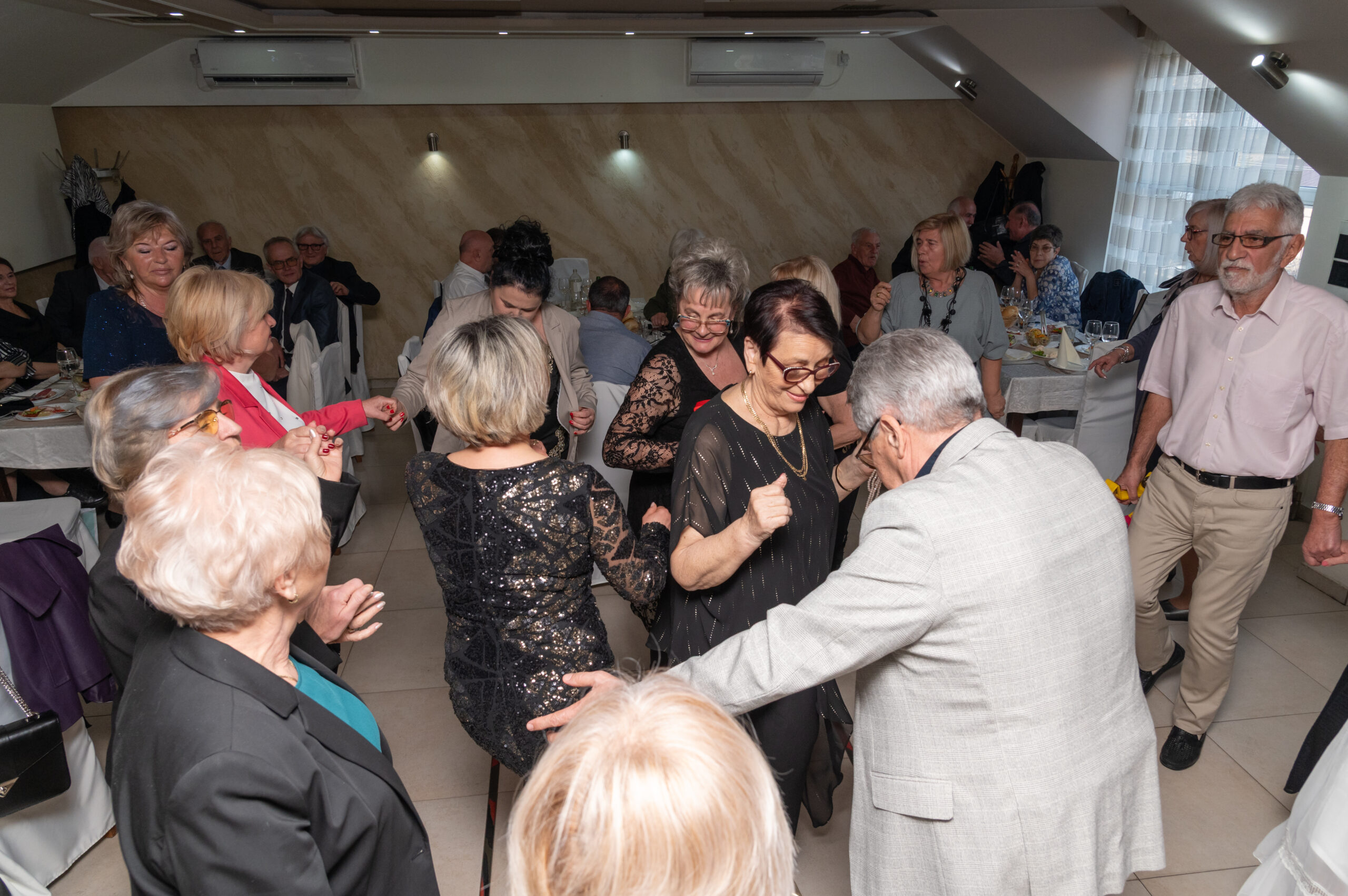 Atmosfera je odmah prijateljska i opuštena, jer veselo raspoloženje je ono što nas čini posebnim – upravo to označava naš slogan i naš duh u udruženju. Veliku zahvalnost dugujemo i ljubaznom osoblju u restoranu, koje nas u svakom trenutku uslužuje sa pažnjom, poštovanjem i zahvalnošću, što dodatno doprinosi da se osećamo kao kod kuće. Njihov profesionalizam i ljubaznost ne samo da usmeravaju proslavu, već i osiguravaju da svi prisutni uživaju u svakom trenutku, kaže Blage Petruševski, predsednik Udruženja.