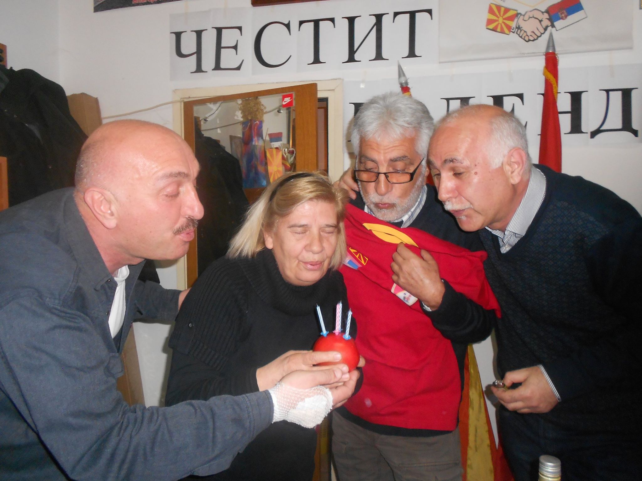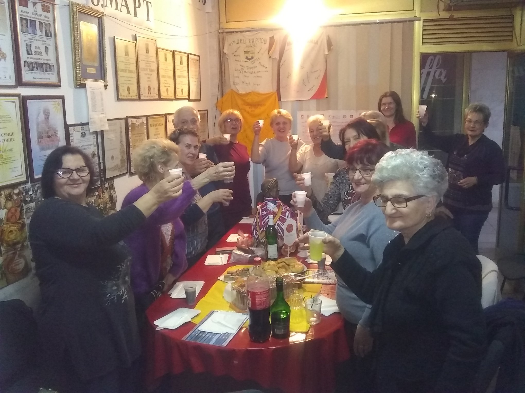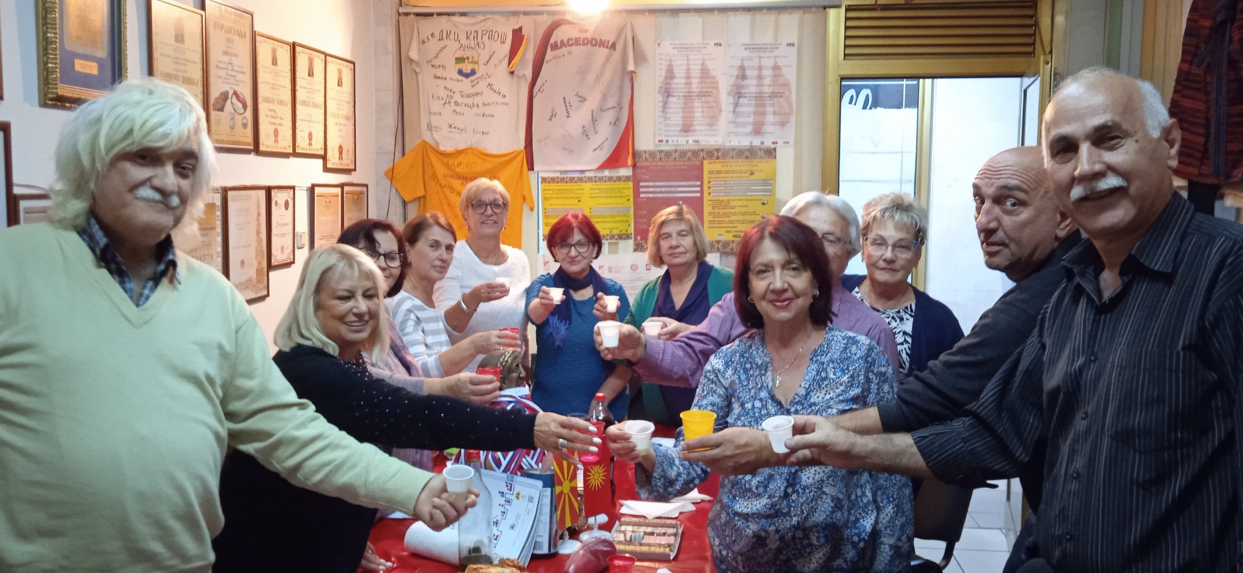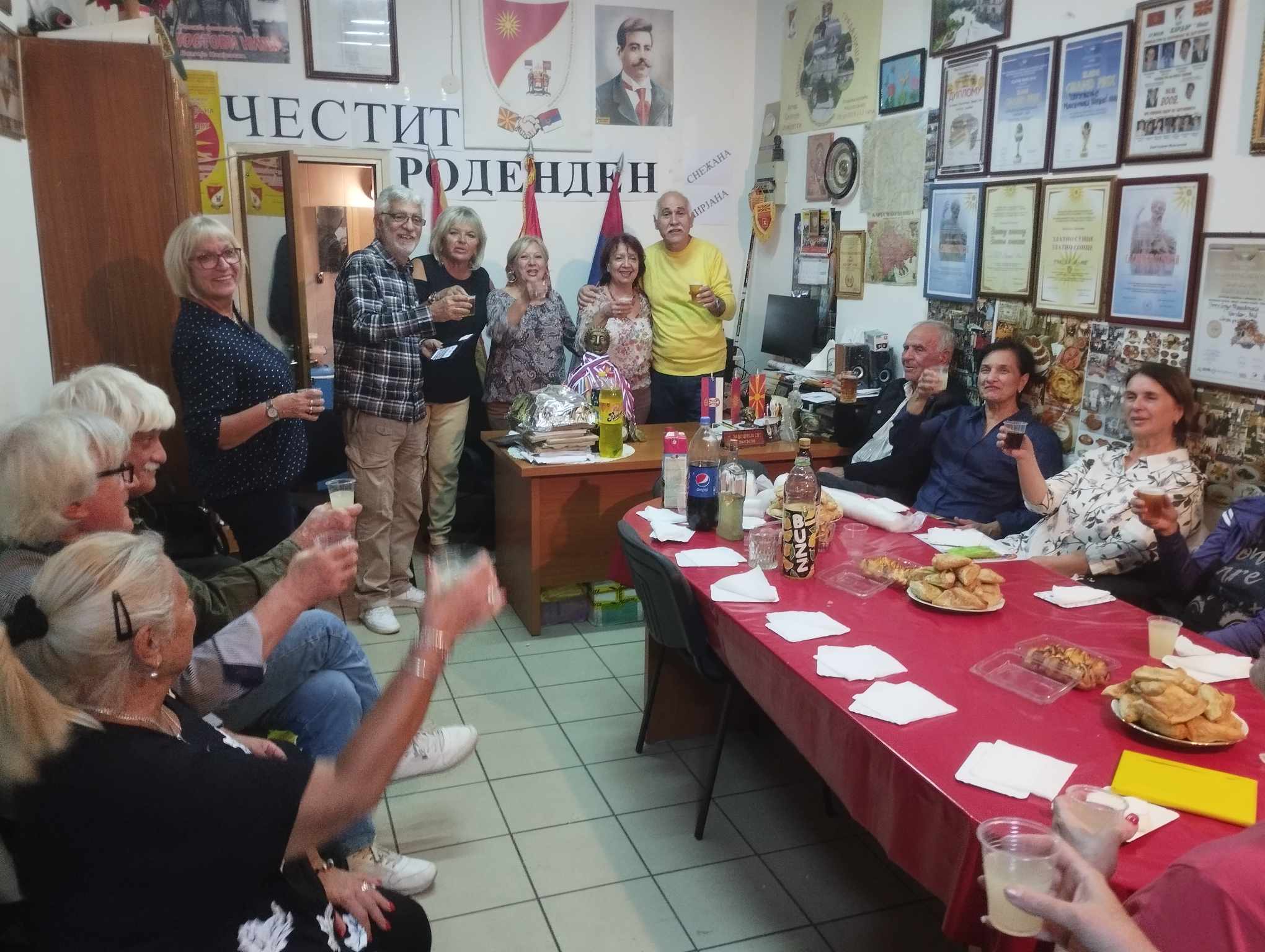 U prostorijama Udruženja, uz zvuke makedonske muzike, vladala je vesela atmosfera dok su se članovi okupljali da proslave još jednu godinu života svojih prijatelja – članova. Prostorija koju Udruženje koristi za okupljanje i za svoj rad ukrašena je bojama i simbolima Makedonije i Srbije, osvojenim nagradama i priznanjima i mirisima tradicionalnih jela, koje su pripremili članovi – slavljenici (brojne slatke i slane đakonije, razne kiflice , pite, torte i slatkiši, testenine, roštilj i zajednička rođendanska torta) koji mame osmeh na lica svih prisutnih.