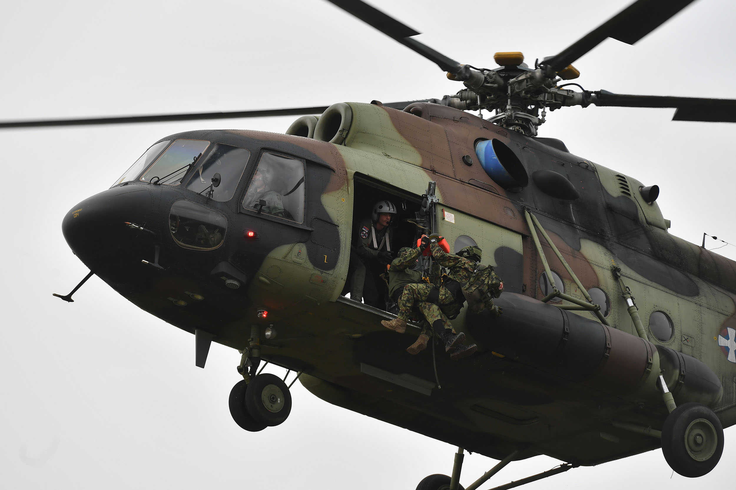Ni, 27. marta 2024 – Borbeni timovi 63. padobranske brigade, u sadejstvu sa helikopterskom jedinicom Ratnog vazduhoplovstva i PVO, realizuju redovnu obuku za izvoðenje diverzantskih dejstava na elemente borbenog rasporeda neprijatelja. Pripadnike brigade je danas, na vojnom aerodromu Narednik-pilot Mihajlo Petroviæ i u rejonu privremenog baziranja u okolini Nia, obiao naèelnik Generaltaba Vojske Srbije general Milan Mojsiloviæ. FOTO TANJUG/ MINISTARSTVO ODBRANE/ DARIMIR BANDA/ bs