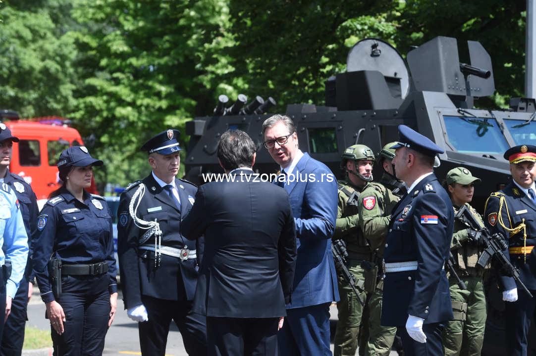 U sklopu ceremonije obeležavanja Dana Ministarstva i Dana policije, u kojoj su učestvovali pripadnici policije opšte nadležnosti, kriminalističke i saobraćajne policije, vatrogasno-spasilačkih, kao i specijalnih i posebnih jedinica MUP-a, Vučić je sa Gašićem obišao taktičko-tehnički zbor vozila koja su Ministarstvu dodeljena tokom ove i prošle godine.