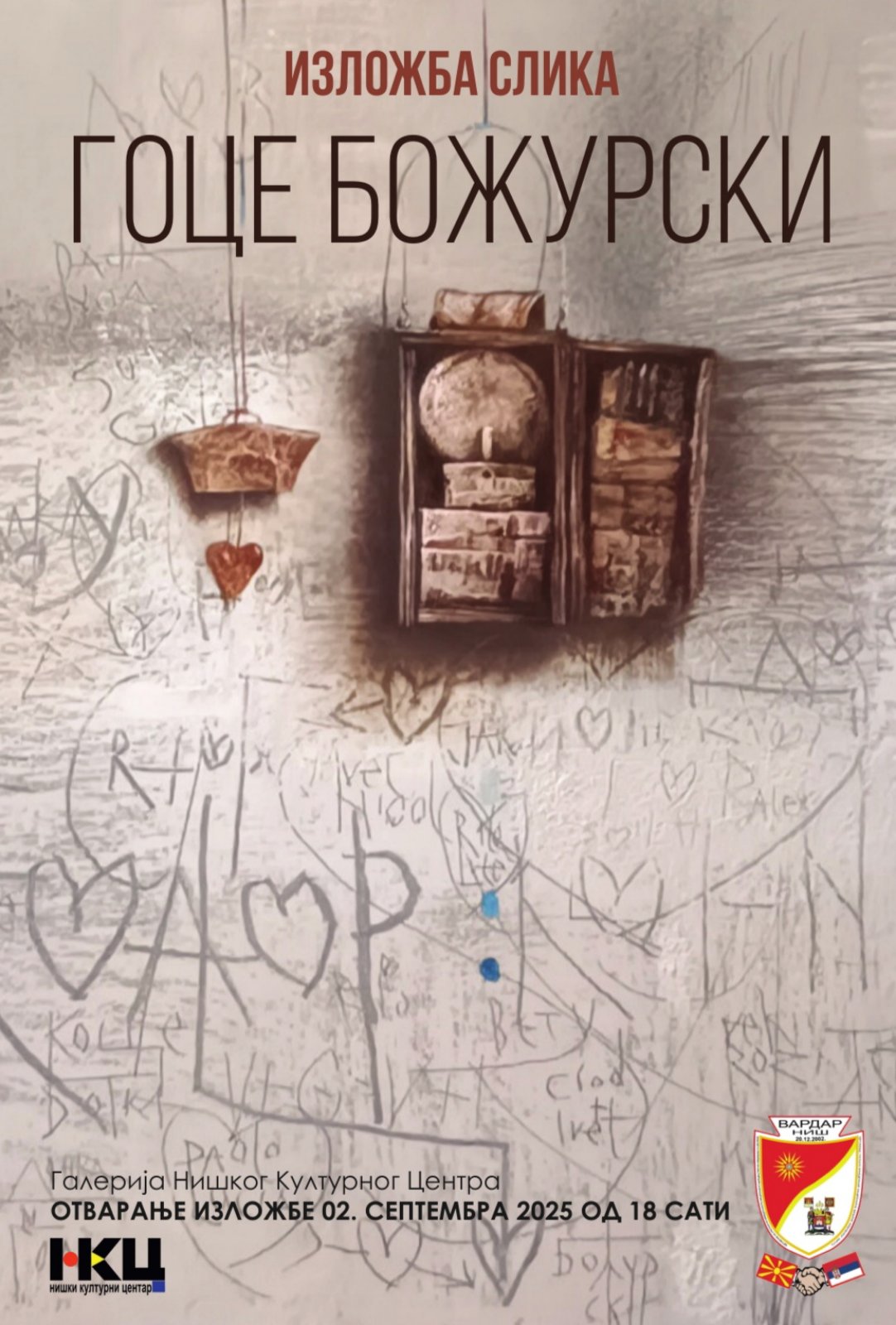 Goce Božurski, umetnik iz Kumanova, otvara Dane makedonske kulture izložbom dela najnovijeg stvaralačkog opusa iz poslednjih pet godina, koja pripadaju ciklusu „Wall Art“. Kao i svi članovi Vardar i mnogi Makedonci i sam je porodično vezan za Niš i Srbiju.