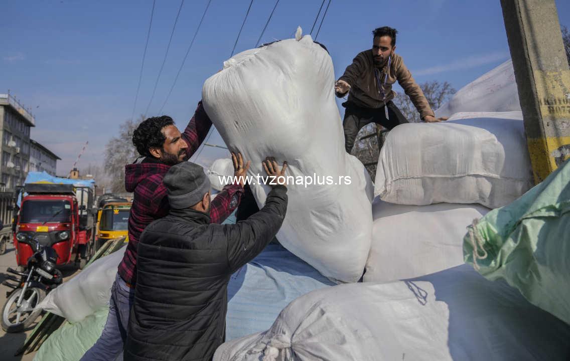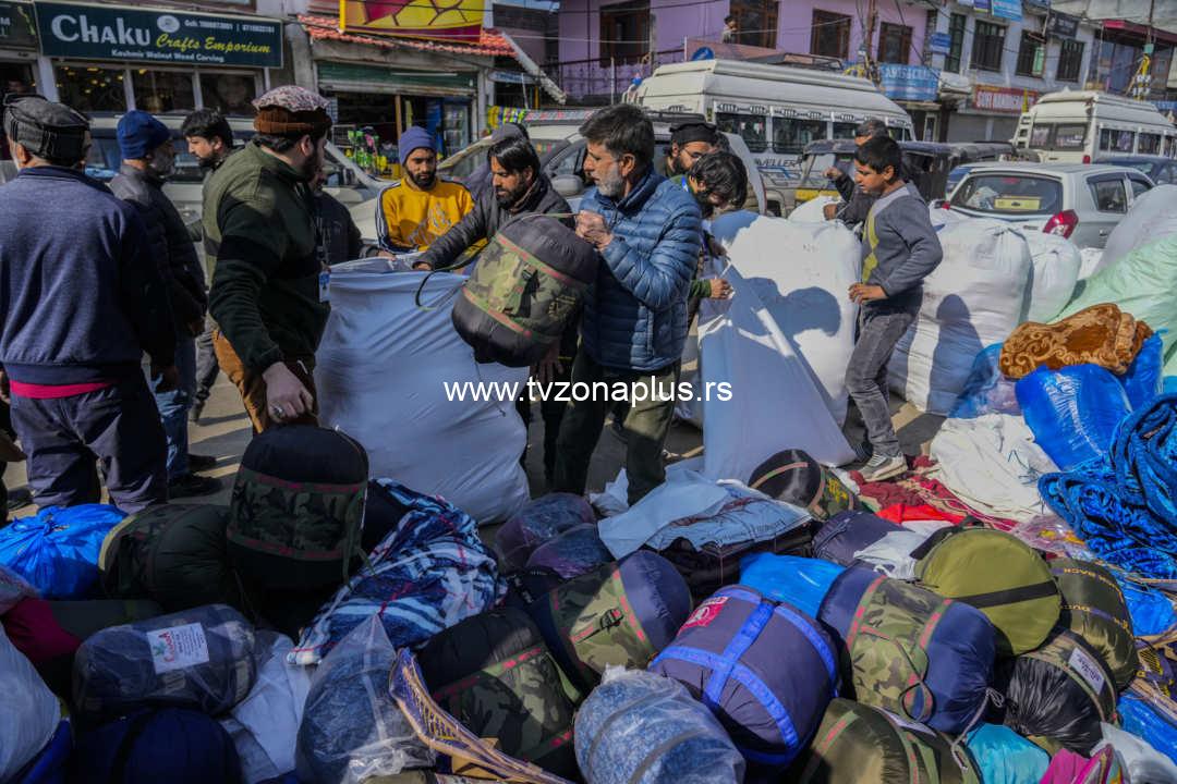 Members of We the helping hands foundation, a local voluntary organization, sort relief supplies for earthquake victims in Turkey and Syria, at a collection point in Srinagar, Indian controlled Kashmir, Monday, Feb. 13, 2022. (AP Photo/Mukhtar Khan)