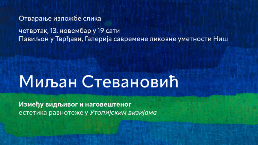 „Između vidljivog i nagoveštenog estetika ravnoteže u Utopijskim vizijama“, naziv je izložbe slika Miljana Stevanovića, koja će biti otvorena u četvrtak, 13. novembra u 19 sati u Paviljonu u Tvrđavi. Izložbu organizuje Galerija savremene likovne umetnosti Niš.