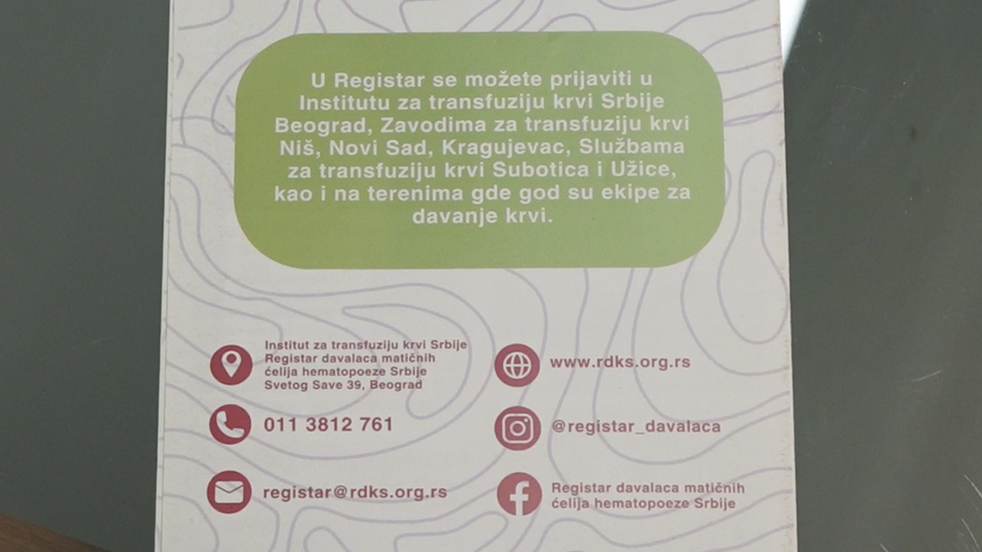 Prijavljivanje u Registar matičnih ćelija osim 5. decembrau Gradskoj kući moguće je i svakog dana u Institutu za transfuziju krvi Srbije, u zavodima u Novom Sadu, Nišu i Kragujevcu.