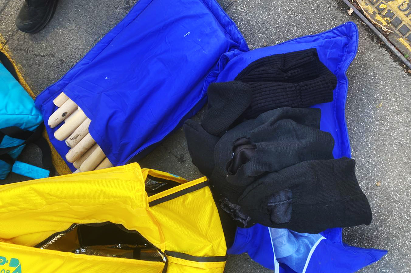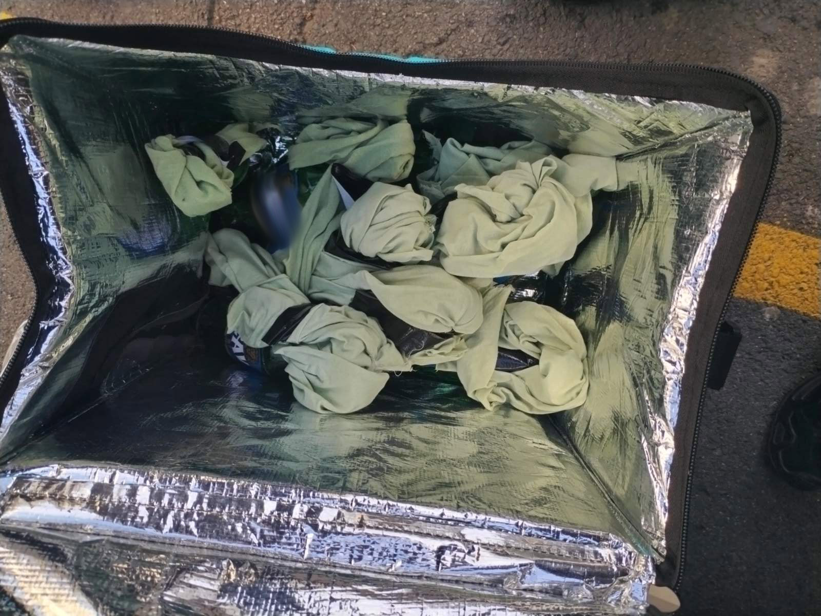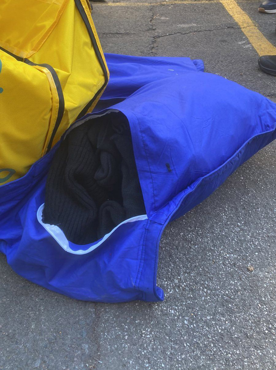 Pregledom ovog vozila od strane policijskih službenika Kontradiverzione ekipe Policijske brigade pronađene su dve torbe u kojima je pronađena veća količina 10 Molotovljevih koktela, 19 palica i 31 fantomka i zaštitne rukavice.