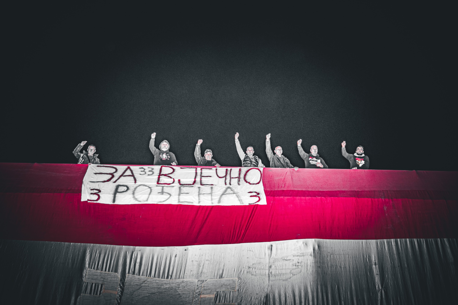 Zastavu dugu 40 metara postavili su članovi Udruženja Srba iz Republike Srpske i Republike Srpske Krajine, a 33. rođendan Srpske proslavljen je uz pesme i vatromet.