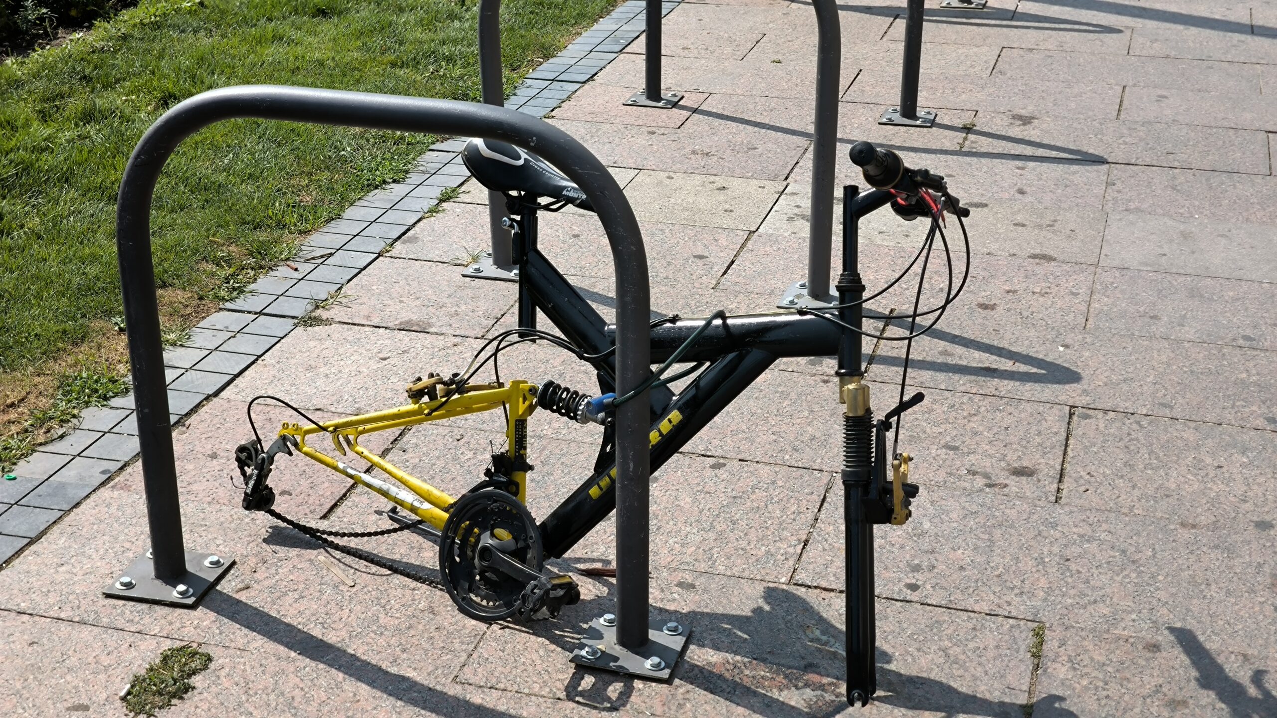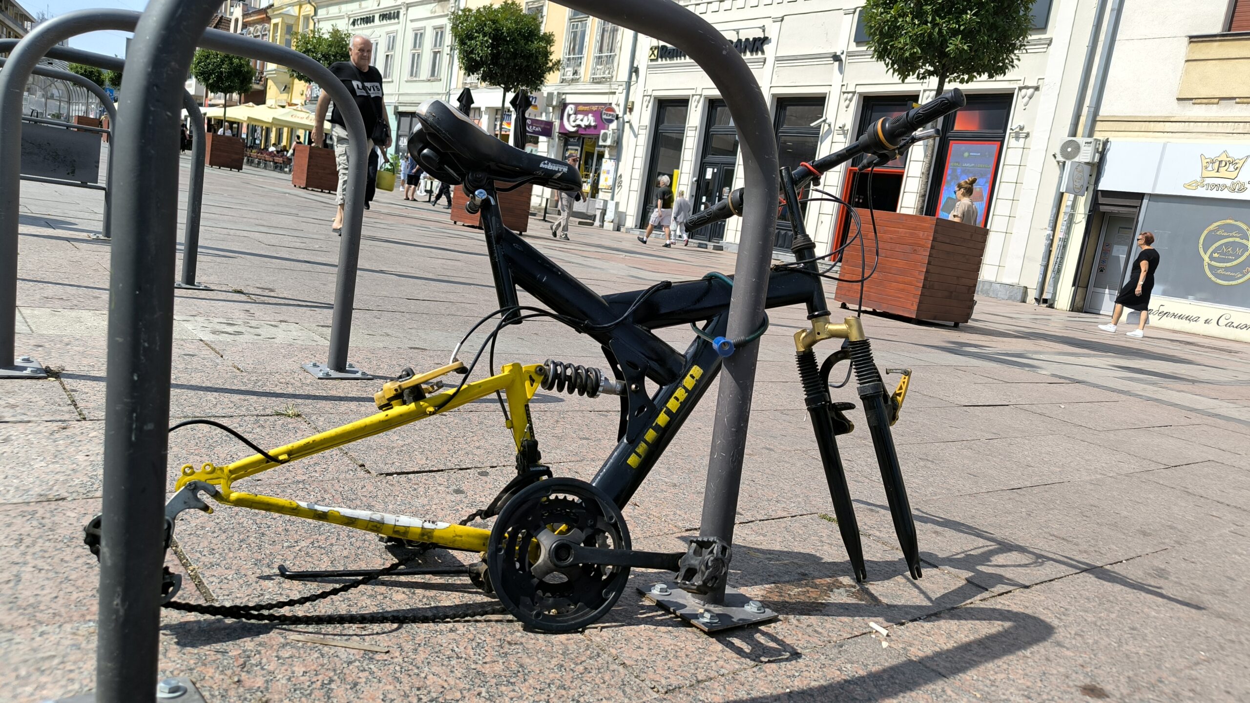 U samom centru Niša bizarna slika: Bicikla pakirana i vezana za parkiralište ostala je bez točkova!