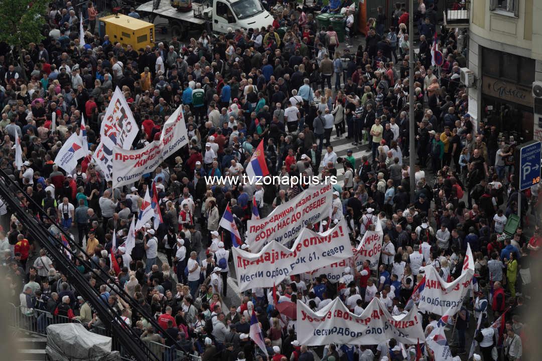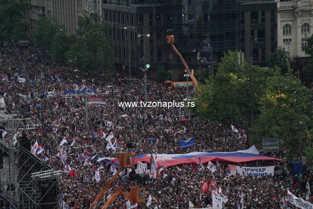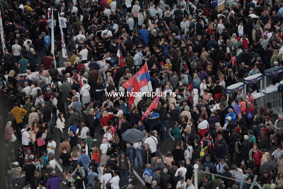 Plato ispred zgrade je prepun građana, kao i Pionirski park, Trg Nikole Pašića, Bulevar kralja Aleksandra i sve okolne ulice.