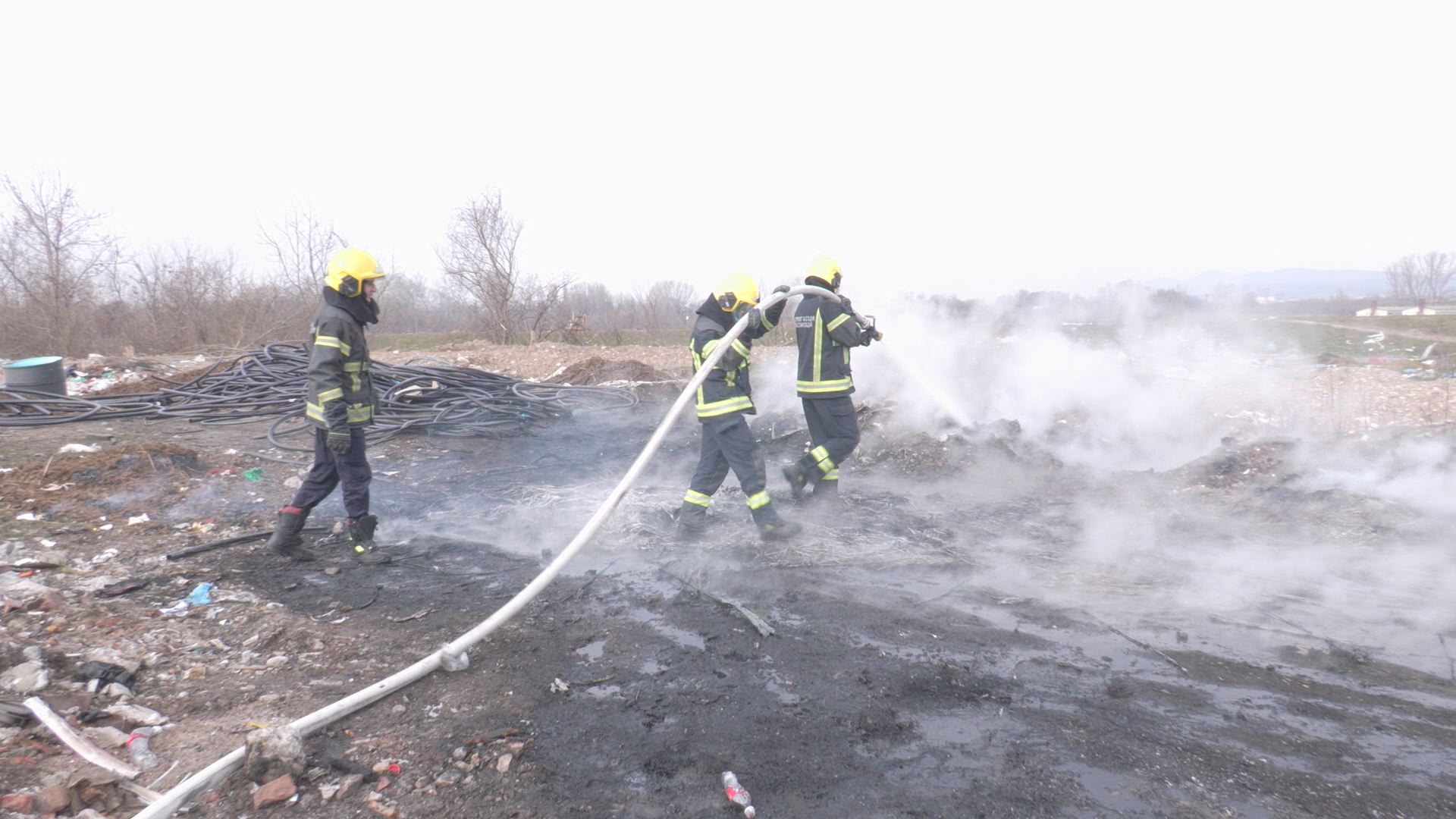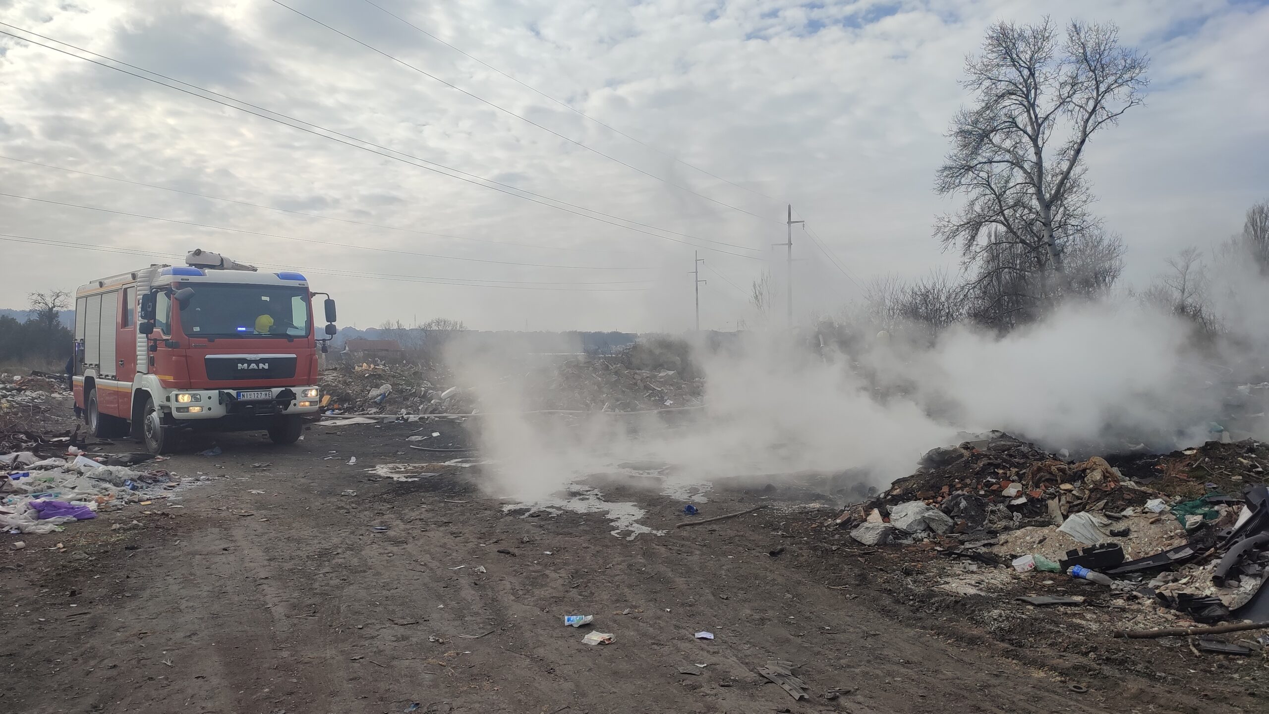 Niški vatrogasci gase požar na divljoj deponiji kod Nišave prema Medoševcu.