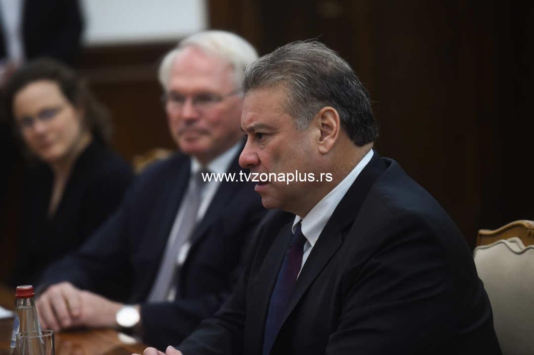 Beograd, 15. marta 2023.- Predsednik Republike Srbije Aleksandar Vucic sastao se sa zamenikom pomocnika americkog dravnog sekretara i specijalnim izaslanikom Sjedinjenih Americkih Drava za Zapadni Balkan Gabrijelom Eskobarom. Ambasador Sjedinjenih Americkih Drava u Republici Srbiji Kristofer Hil je prisustvovao sastanku. FOTO TANJUG/ STRAHINJA ACIMOVIC/ bg