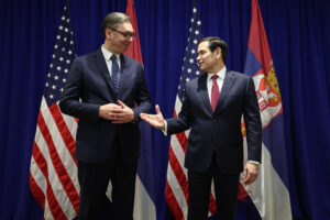 Vučić se, na marginama zasedanja Generalne skupštine UN posvećene dešavanjima u Gazi i Ukrajini, u utorak sastao sa državnim sekretarom Sjedinjenih Američkih Država Markom Rubiom. Predsednik Srbije je na Instagram nalogu saopštio je da je imao važan i sadržajan razgovor sa Rubiom o jačanju političkog dijaloga Srbije i SAD, unapređenju ekonomske saradnje i zajedničkim bezbednosnim izazovima.