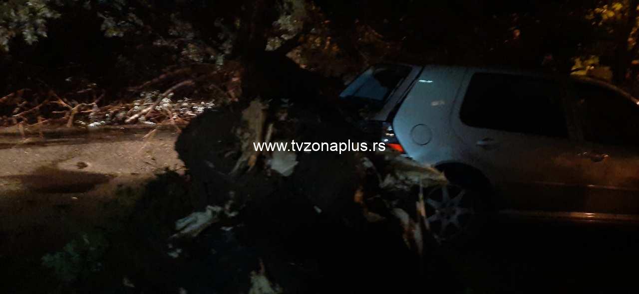 Trulo stablo, visoko oko 10 metara, srušilo se večeras posle pljuska na parking pun automobila u Duvaništu, u neposrednoj blizini bivše kafane „Lipov lad“.
