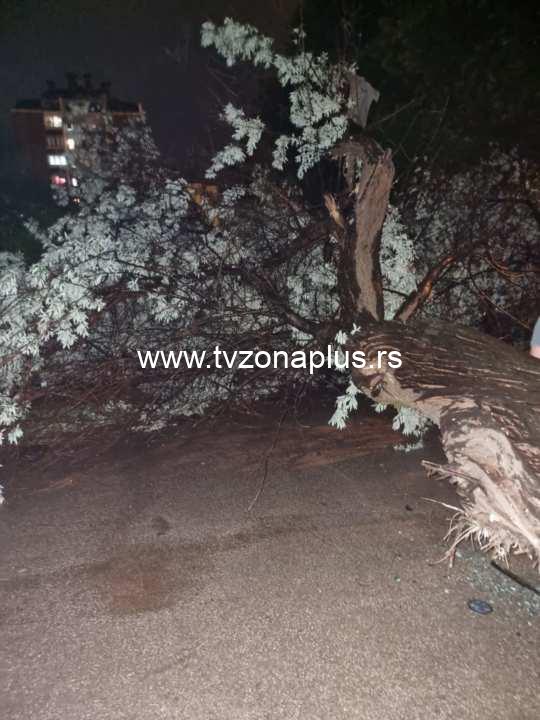Stablo koje je staro više decenija i koje je bilo na samo nekoliko metara od zgrade slomilo se i palo na prilaz kojim se dolazi do parkinga.