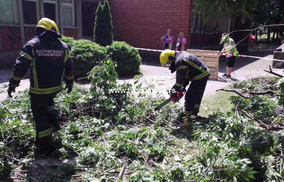 Od ponoći do 12 časova, pripadnici vatrogasno-spasilačkih jedinica imali su 33 intervencije na kojima je izvršeno jedno gašenje požara koji je izazvan udarom groma, 26 intervencija uklanjanja oborenih stabala i šest intervencija uklanjanja limenih krovova.