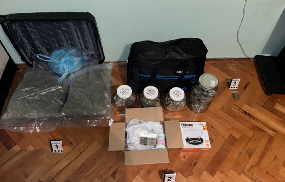 Takođe, pretresom stana koji A. Z. koristi, pronađeno je 106 paketa sa oko 2,25 kilograma materije nalik na marihuanu, dve vagice za precizno merenje i oko