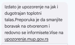 Danas je i građanima putem SMS- a stiglo upozorenje na jak i dugotrajan toplotzni talas. U SMS se navodi sledeće: