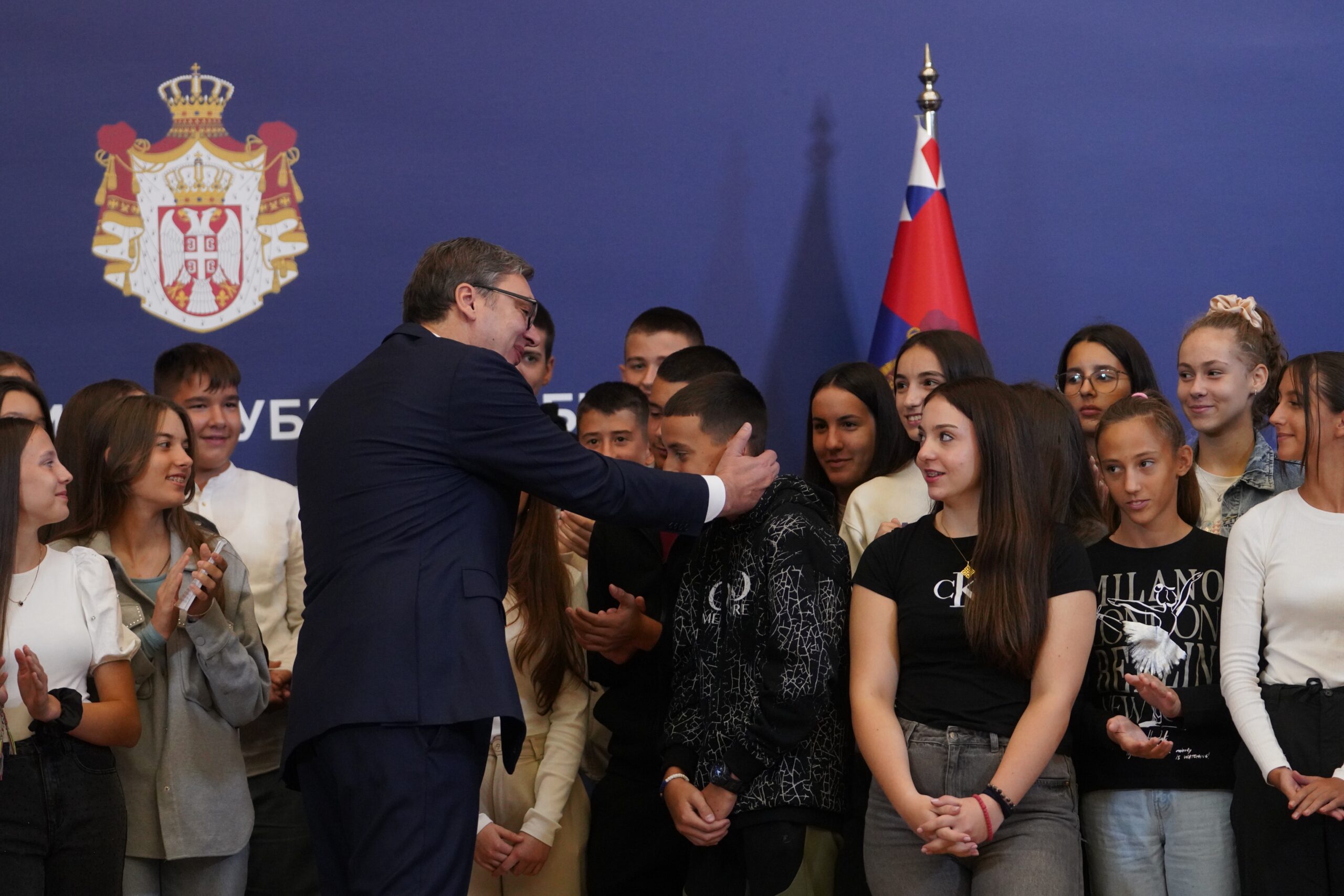 Povodom obeležavanja Dana srpskog jedinstva, slobode i nacionalne zastave, predsednik Srbije Aleksandar Vučić primio je danas učenike i nastavnike osnovnih škola i predsednike opština iz Republike Srpske i Crne Gore.