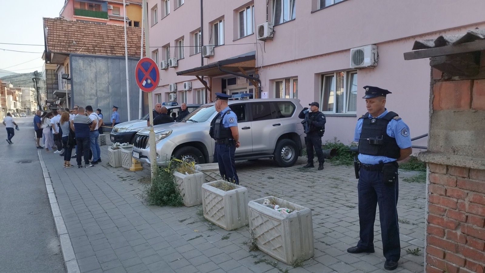 Zgrade Privremenih opštinskih organa, PIO fonda za Kosovo i Metohiju, Kosovsko-mitrovačkog upravnog okruga, Centra za socijalni rad i dalje su pod blokadom takozvane kosovske policije, čiji pripadnici sa dugim cevima u blindiranim i terenskim vozilima, danonoćno dežuraju na ulazima objekata ispred kojih su postavljene metalne i papirne table sa nazivima ministarstava prištinskih privremenih institucija.