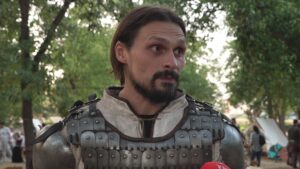 “Za danas smo pripremili prikazne borbe, koje su zabavnog karaktera, kako za borce, tako i za publiku, a sutra ćemo praviti i mali turnir u laganim i grupnim borbama. Svaki od učesnika koji ovde dolazi prikazuje neki period koji želi da rekonstruiše. Trenutno je na meni klasični oklop koji biste mogli da vidite u 12. veku Vizantije, pa i u Rusiji u 13. i 14. veku” kaže Nikola Brkić iz Viteške svebor družine “Zmajeva griva”.