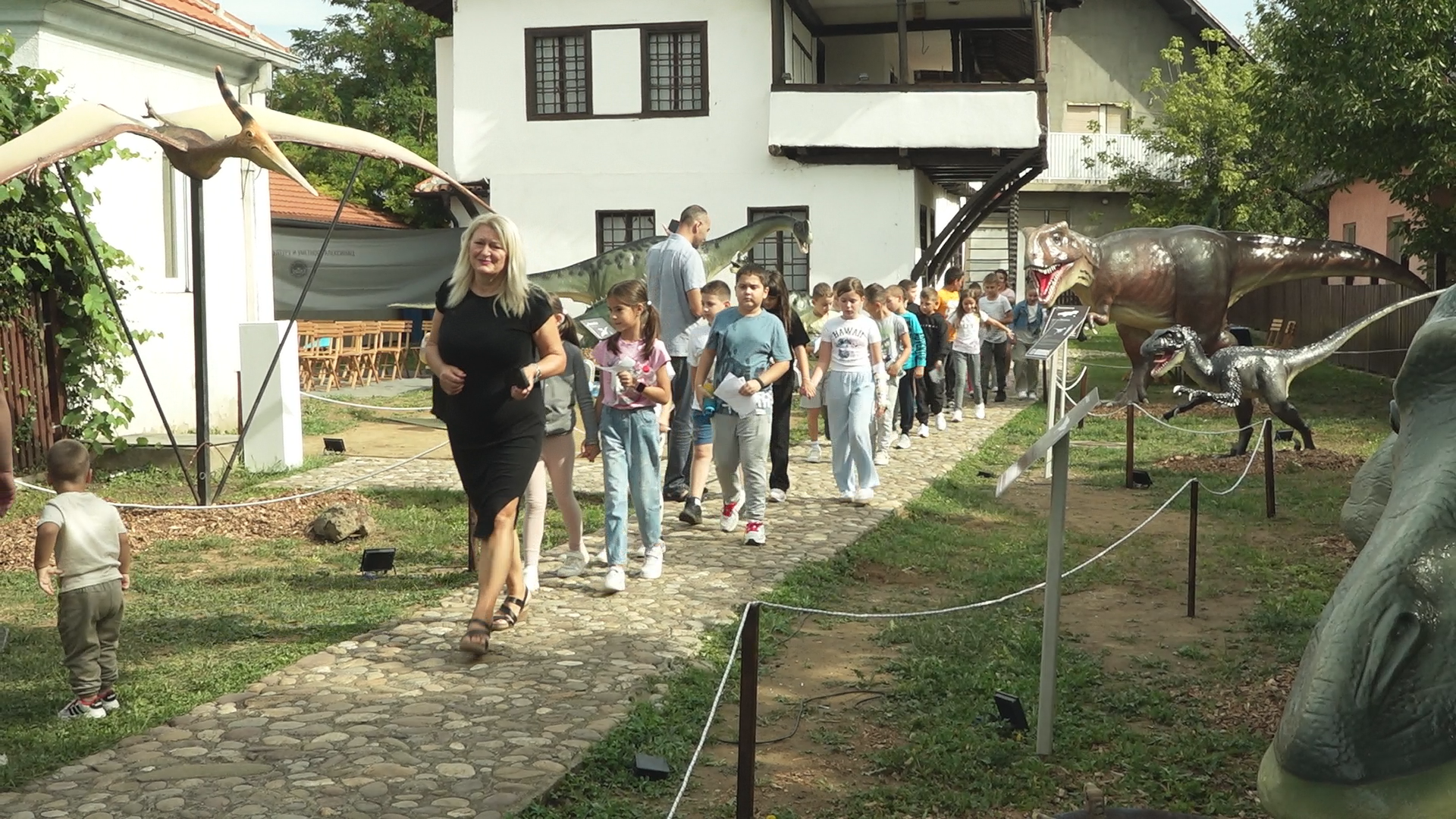 Dvorište Zavičajnog muzeja u Aleksincu puno dinosaurusa. Eksponati pterodaktila, majasaura, tiranosaurusa i…